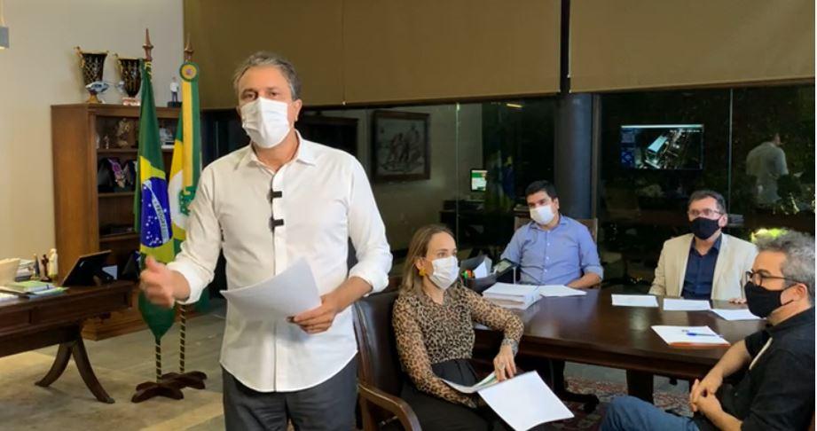 Legenda: Camilo fez o anúncio ao lado de integrantes das secretarias do Planejamento, da Fazenda, da Cultura e da Casa Civil